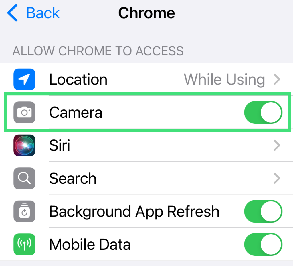 If the camera or microphone is not enabled when using the Chrome browser on an iPhone, try the following: